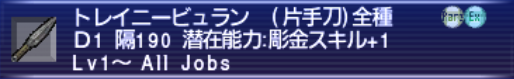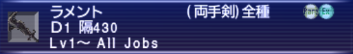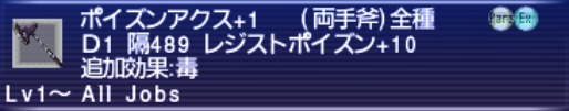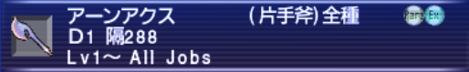 今回はD値が1でAll Jobsの武器のまとめになります。過去にもまとめましたがブログの利点を活かしてリメイクしてみました。
