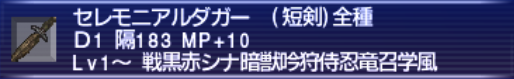 エンダメージによる削りに関しては2種類あり、相手のTPを貯めさせない場合にD1武器が必要になります。逆にそれ以外であればD1でなくても大きな支障はありません。後は少しでも手数を増やすために出来るだけ隔の値が小さい短剣を選びます。