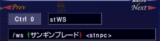 護衛を殴ってWSはアレバティに撃つために<lastst>を活用します。まず<stnpc>のWSマクロでサブターゲットを記憶させたら、後は<lastst>のWSマクロを使うだけです。